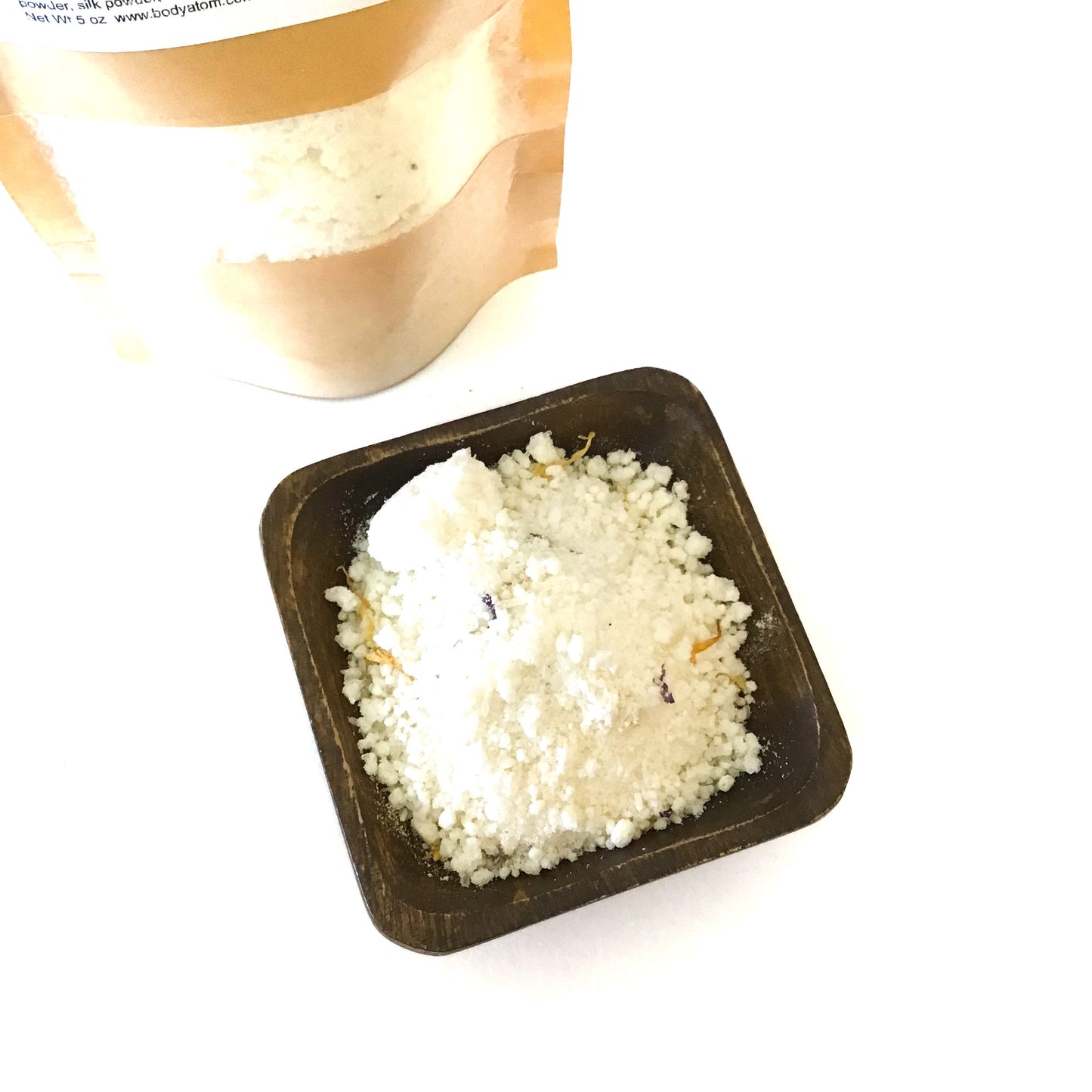 Ingredients: epson salt, citric acid, himalayan salt,aloa vera powder, kaolin powder, silk powder, jasmine and lavender essential oil, vegetable glycerin.